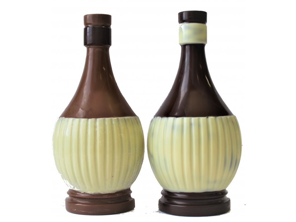Velká láhev na víno z mléčné nebo hořké čokolády.